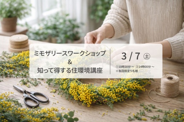 健康住宅の[村岡組デザイン]様で『ミモザリースワークショップ』が開催されます。